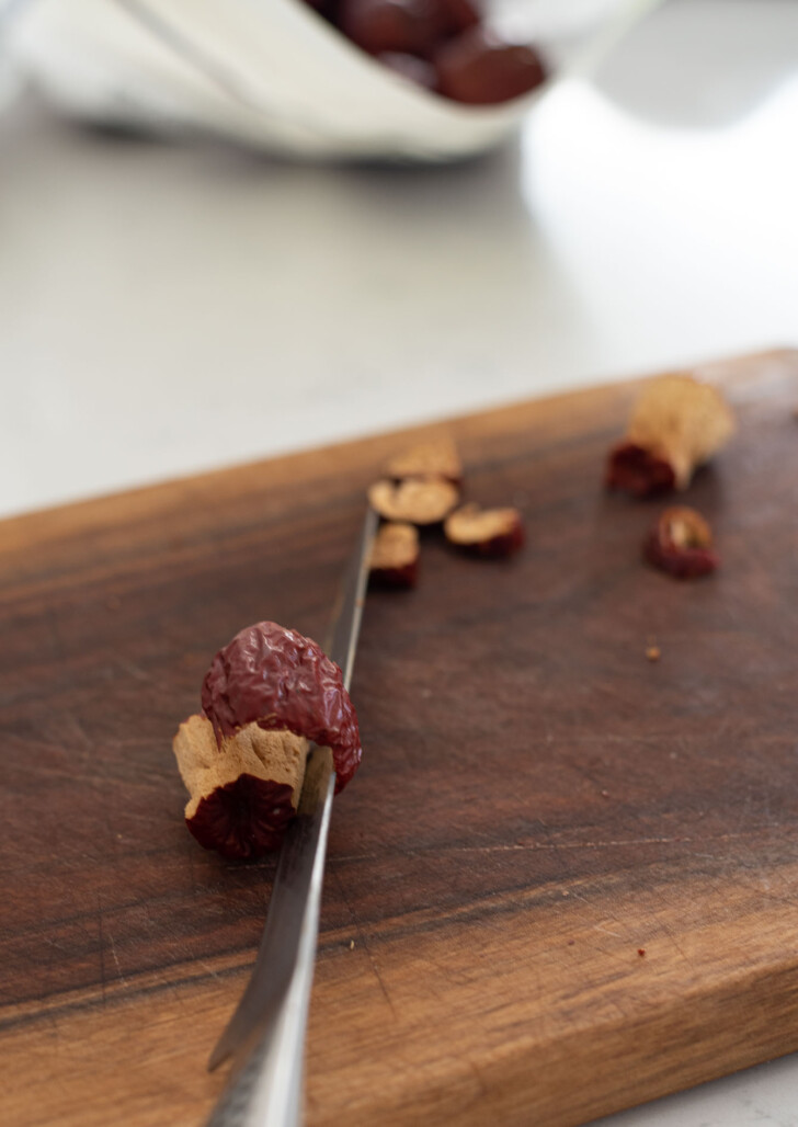Make jujube stock. Simmering the jujube seeds briefly gives you a naturally sweet, amber-colored stock that deepens the flavor. It’s one of those small old-fashioned steps that adds real richness.