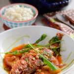 Add the fish and the kimchi seasoning paste to the pot. Smear the Korean soybean paste to incorporate to the broth. Boil the stew over medium heat for 4-5 minutes or until fishes are cooked and the radishes are tender, spooning up the broth over the fish occasionally.
